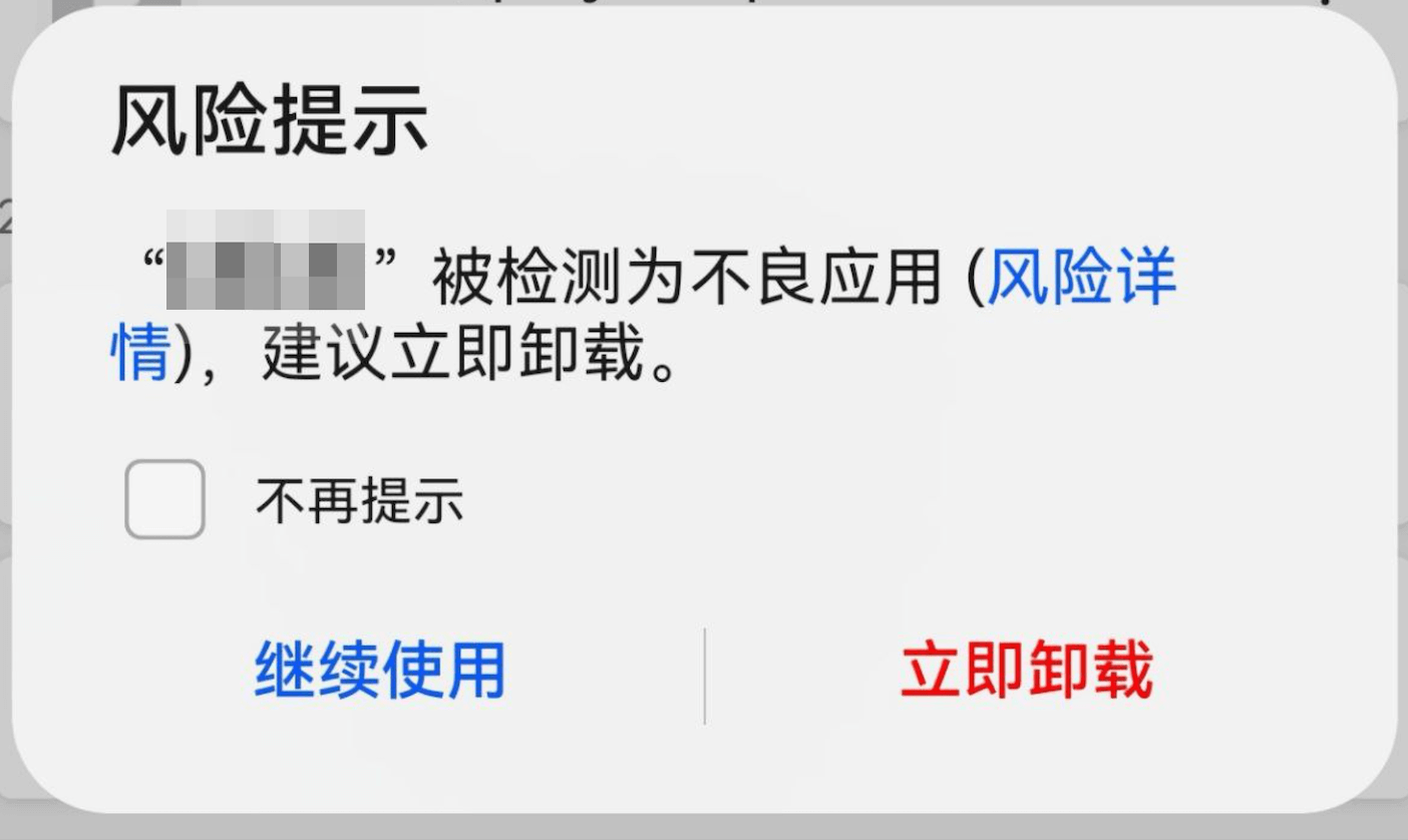 当应用出现以下风险提示时,请勾选不再提示,选择继续使用
